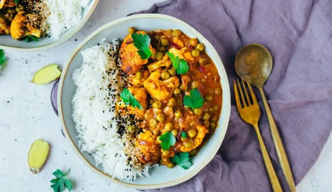 For those who don’t feel like cauliflower and peas today, I recommend the. quick masala chickpea curry , vegan pumpkin curry or Creamy Korma Curry .