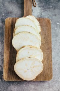 - 1 Piece Celery bulb (approx. 440g) green removed, peeled and washed and cut into 1-1.5cm thick slices