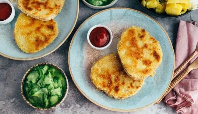 Celery cutlet, gluten-free and vegan is an absolute classic for me in vegan cuisine. It’s just the thing for those days when you’re craving a schnitzel. Who wants to go to a restaurant when you can make such delicious schnitzel at home? Corona is a really bad thing, but the pandemic also has good sides. For example, the fact that many more people cook at home. The restaurants are closed and after the tenth pizza from the delivery service, sometimes you long for something homemade. For these situations, a celery cutlet is ideal. Together with jacket potatoes and a cucumber salad, you almost feel like you’re in a restaurant. You can dream, can’t you?