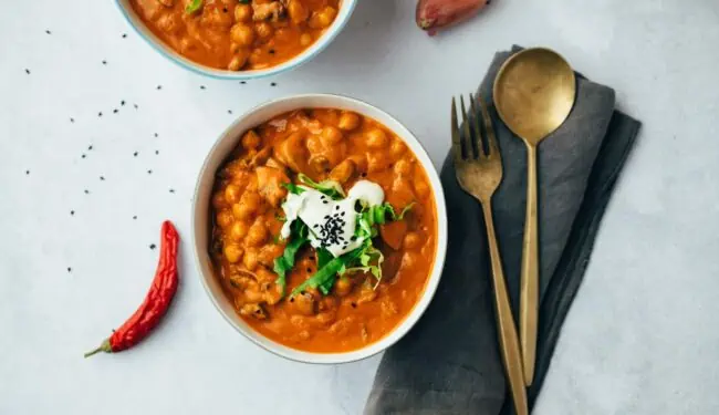 Those whohave gotten to know me a bit by now know that I’m into Currys stand. They are quickly made, full of flavor and make really nice filling. This dish actually sounds quite exotic, but has its origins in England. In 2001, it was even voted the “national dish”, i.e. the most popular dish of the year. Originally it consists of marinated chicken and a fruity-spicy tomato sauce. I replace the meat with delicious and healthy chickpeas, so it also becomes a vegan version to a poem. I think it’s just darn tasty and would love for you to enjoy it at least as much. Bye Bye Fish `n Chips and welcome Tikka Masala!