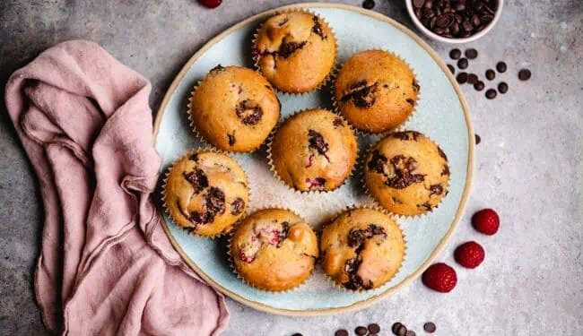 Simple vegan muffins with raspberries and chocolate