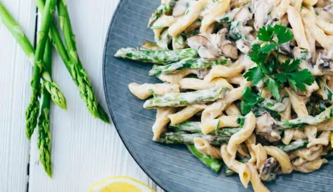 Creamy pasta with green asparagus and mushrooms (30 minutes)