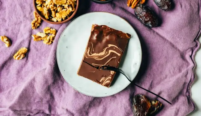 Prepare vegan date caramel slices
