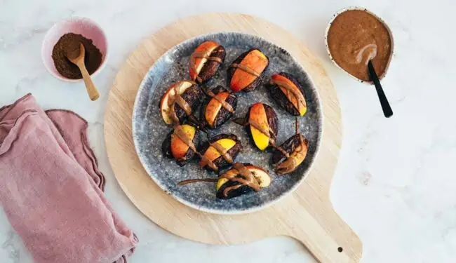With this snack we combine many healthy and delicious foods. Dates, apples, cinnamon and nut puree. By the way, if you want to know more about the healthy properties of apples, you can find an article here.