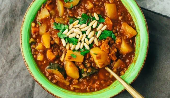 - Simmer over medium heat for 20 minutes, until the lentils and remaining vegetables are nice and soft.