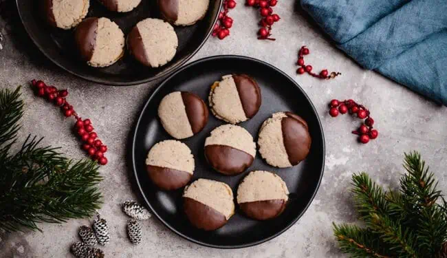 - Dip one side directly into the melted chocolate and allow to set on a draining rack. Repeat until all cookies are processed.100 g dark chocolate coating