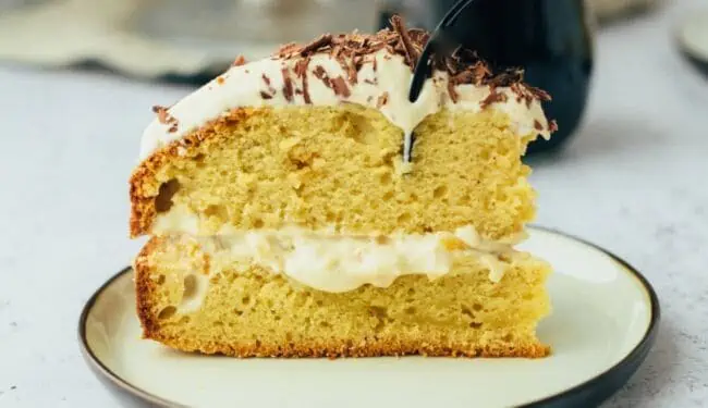 If you want to skip the frosting completely, no problem. Just sprinkle some powdered sugar over the cake and you’re done! The dough tastes great even like this. One Golden Latte , Immune tonic or just a great hot cup of coffee with it and you’re done.