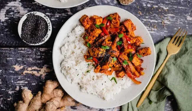 Indian pan with peppers and tofu is just right when you want something different. When looking for a quick dish, people usually reach for the classic pasta, forgetting how many simple and quick recipes there actually are. I still had some peppers in the fridge that absolutely had to go and immediately took the opportunity to make something Indian out of them. Beautiful spices, great colors and a slight spiciness. Together with rice, it makes a great, wholesome dish. Let’s get started together.