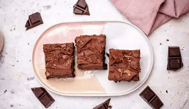 As usual, the ingredient list is short and straightforward. Gluten-free flour mix, oat flour, raw cane sugar, cocoa powder, bourbon vanilla, baking powder, baking soda, salt, melted chocolate, apple pulp, maple syrup, a shot of espresso and plant milk. All this is mixed into a smooth dough and baked for 40 minutes. I use a rectangular shape with the dimensions 24×24 centimeters.