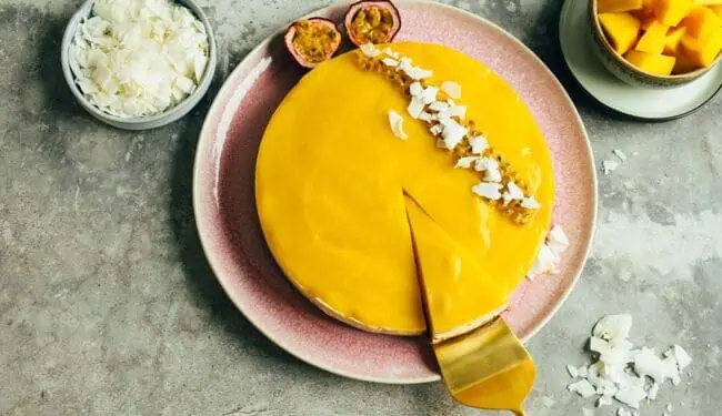 I hope you now have a desire for a delicious piece of mango cheesecake (oil-free). If yes, then I wish you much fun with the “Nachbacken” and of course about a rating at the bottom of this page. If you post a picture, use the hashtag #veganevibes.