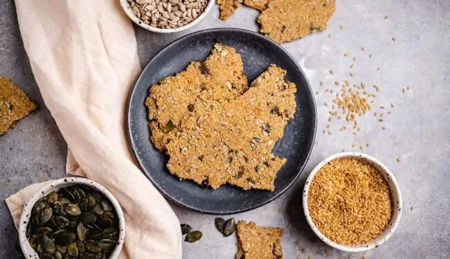 Simple, crunchy crackers made from flax and various seeds, very tasty and versatile