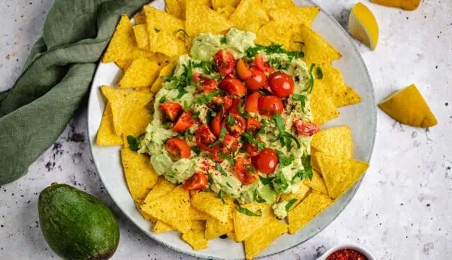 Nachos with avocado tomato salsa is just perfect when the temperatures pick up and it finally gets warmer again. I love the sun and the time when you can sit on the balcony or terrace and literally let the warm rays of the sun shine on your belly. Then, when it’s time for a cozy evening with friends, it’s time for light and delicious dishes to snack on. That’s exactly why I think this delicious nacho bowl is so awesome. My favorite way to eat them is with friends as an appetizer, along with a delicious drink. Well, do you feel like it? Then let’s get started together.