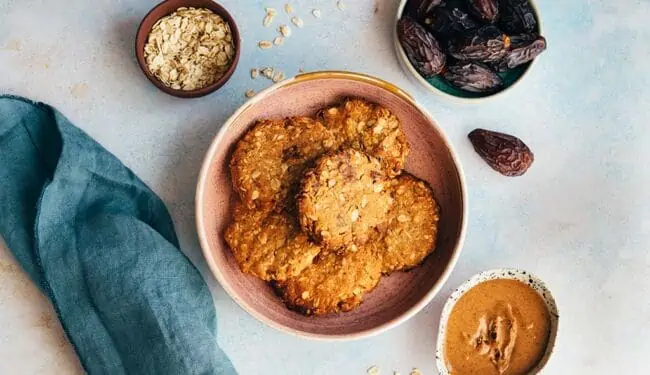 Oat cookies with date chunks, sounds delicious, right? I am definitely in love and those who know me, know that I love sweets. In addition to chocolatey snacks, it can also be something a little more substantial now and then, with oatmeal and dates. I need nerve food more than ever at the moment, because Corona is pushing us all to the limit. What is allowed, what is not allowed? Travel? Yes, no or just maybe? I don’t even want to talk about all the other issues. One thing is for sure, it wears on the nerves and for that I need healthy snacks. Dates are great for this, on their own or as in this recipe combined with oatmeal in the form of a cookie(or two). I would love to get right back in the kitchen and bake another batch. The first one is already eaten away.