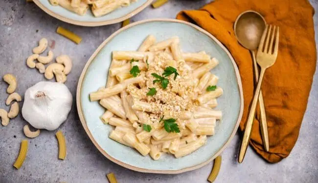 This simple and quick vegandish consists of two components, the pasta, and the sauce. Anything goes when it comes to pasta selection and you have the choice of durum wheat pasta, or a gluten-free option. For gluten-free variations, pasta variations made from rice or other legumes are suitable. You can find gluten-free pasta in well-stocked grocery stores or online.