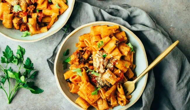 Pasta alla Norma with oven roasted eggplant (30 minutes)