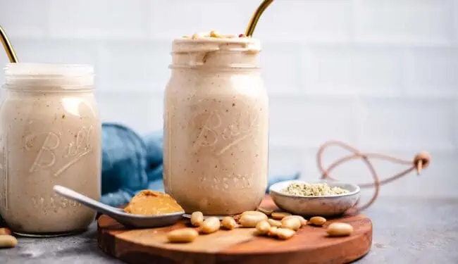 - In a high-powered blender, blend plant milk, bananas, hemp seeds, peanut butter and Medjool dates until desired consistency is reached (I like it very fine). TIP : Add liquid ingredients to the blender first.500 ml Plant milk, 300 g Bananas, 24 g hempseed, 30 g Peanut butter, 2 Piece Medjool dates, One handful each of kale or spinach