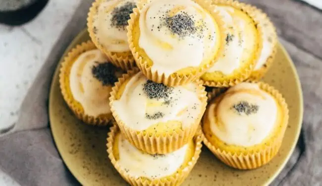 - Prepare the icing prepare and decorate all the cupcakes with it. Sprinkle with poppy seeds and enjoy!100 g Powdered sugar, 15-30 ml Lemon juice. 1-2 TBSP, Poppy at will