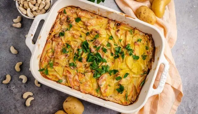 Potato gratin with creamy cashew sauce. Those who know me, know that I am a big fan of potatoes. In my view, they are totally underestimated and come up far too little. My grandmother used to have potatoes in all kinds of shapes and creations every day. I loved them for the homemade potato dumplings that I practically devoured as a kid. Preferably with lots of sauce. The days are currently getting shorter again and I’m craving warm, filling dishes that are still healthy. This gratin is virtually the best answer to this. It will definitely be on my table more often this fall/winter.