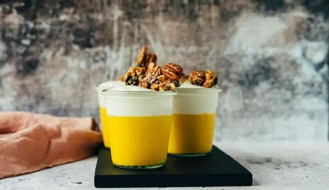 Kürbis Mousse mit Nuss-Brittle (vegan)