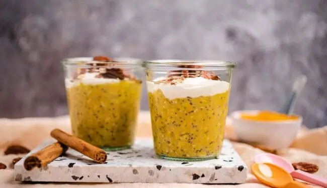 Pumpkin Pie Overnight O ats are just perfect for the autumn season. Those who know me know that I am a pumpkin junkie and never miss an opportunity to make something with it. My favorite squash is still the Hokkaido, followed closely by the butternut squash. So that I can also benefit from the autumnal flavors already at breakfast, I dared to this deliciously creamy Pumpkin Pie Overnight Oats.