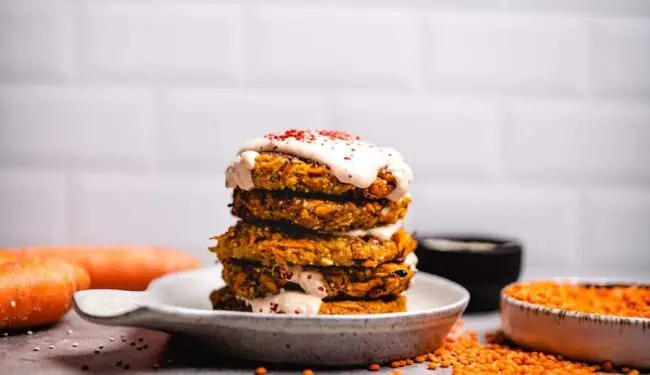 Quinoa and red lentils go really well together and bomb with these pancakes. I love the pancakes or fritters (amercan) along with a refreshing harissa yogurt, which by the way is my new must have. These healthy fritters have a great texture, are quick to make, and are super easy to prepare. Admittedly, they are also quite delicious cold with a snack. Well, do you feel like it? Let’s get started.