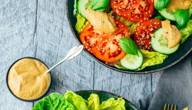 Salad with creamy hemp tomato dressing (oil-free) is: