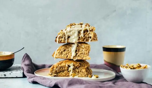 Finally we have scones again! I love this delicious triangular pastry more than anything. Summer is taking a short break for us and I’m trying to focus even more on the blog and my training as a vegan nutritionist. It won’t be long before I’m through with my advanced training. It is really exciting to see how well researched the vegan diet has become and how easy it is to eat a purely plant-based diet. However, some people still feel emboldened to make fun of the new trend of “plant based lifestyles“. It was unnatural and one would have to supplement synthetically. Unfortunately, these same people do not ask themselves the question of how the B12 gets into the meat. Certainly not naturally, or when was the last time you saw a pig running happily in a meadow? I think I will write a detailed knowledge article about B12 soon. Now though, let’s focus on our delicious scones!