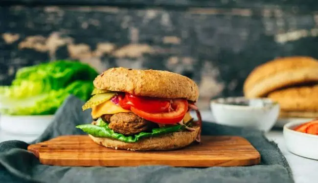 - Place in a bun, garnish with desired toppings, bite into and enjoy.Burger buns at will, Vegan cheese slices, Romaine lettuce, Vegan mayo, BBQ sauce