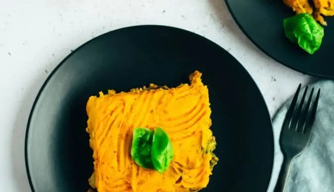 - Spread over lentil-vegetable mixture and smooth. Use a fork to draw in patterns as desired.