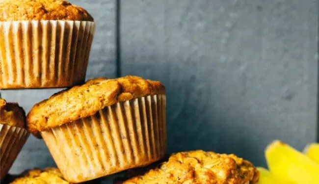 The muffins are ready in 45 minutes, including prep time, and use only a few ingredients. 1 bowl, 1 muffin baking tray and off you go!