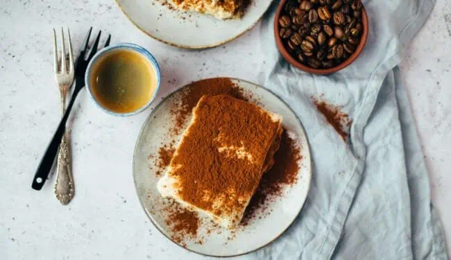 • Allow time for the tiramisu to infuse, covered, in the refrigerator for a few hours. Then the consistency will be just wonderful. If it’s warmer outside, I like to put it in the freezer for another 15-20 minutes before serving. This makes it easier and more precise to portion.