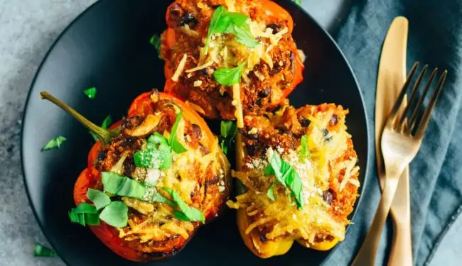 You’ll be amazed at how filling these stuffed peppers make. Quinoa and beans are not only delicious, but also ensure that the last spark of hunger feeling is eliminated. Matched with a fresh, mixed salad with a great balsamic dressing . If dessert is desired, then perhaps such a delicious Chocolate dessert ?