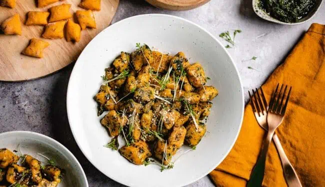 Vegan sweet potato gnocchi with pesto