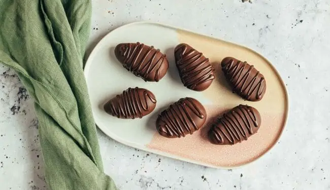 Irresistibly delicious chocolate eggs filled with nut butter, dates and almond flour