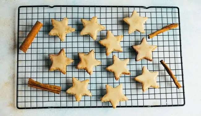 - Brush the cinnamon stars with the icing(a spoon is best for this) and allow to set.