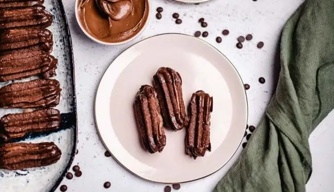 - Remove from the oven and allow to cool completely. Nut nougat cream Prepare and spread on one pastry stick at a time. Place another dough stick on top and repeat until all dough sticks are used.100 g Nut nougat cream, 100 g dark vegan chocolate coating