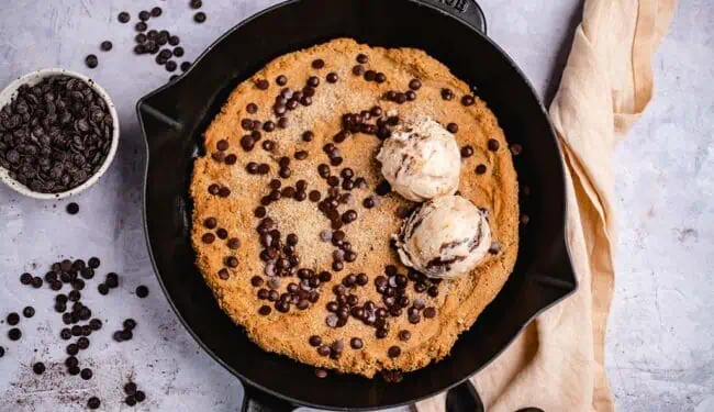 Perfect! Otherwise, you can hardly go wrong when baking this beauty. Are you ready for this super easy, gluten-free skillet cookie? He is:
