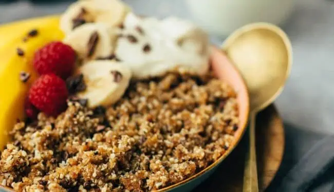 It’s Monday again my dears (at least today as I write this Recipe writing) and incredibly uncomfortable outside. These are the days when I need a warm porridge in the morning to get me going. I have heard that there are people who take ice-cold showers after getting up. Really? I can’t even imagine it, but maybe I’ll manage to implement this ritual someday. It’s supposed to be really, really healthy. Well, this morning I definitely thought of warm and sunny Bali, because an acquaintance did her yoga training there. I couldn’t help but remember this incredibly delicious RAWnola at Peloton Supershop. Maybe I can get a few rays of sunshine in the cold and wet Bavaria?