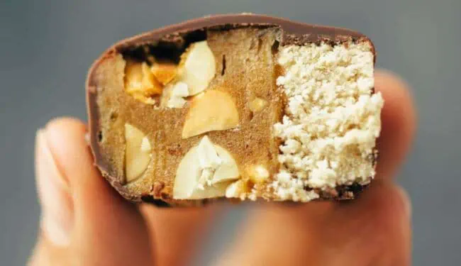 The “Snickers” go perfectly with a Chocolate Chia Smoothie, Immune Booster Latte or Strawberry Protein Smoothie .