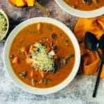 1 tbspn Onion powder, 2 tbspn Garlic granules or 2-3 cloves of fresh garlic, 2 tbspn Tomato paste, 250 g Butternut squash, 4 Piece big carrots, 2 tbspn Italian spice blend, ½ Cayenne pepper or dried chillies, 1 tbspn Turmeric, Optional: add 150g of soy cutlets along with 1 cup of vegetable broth for an extra serving of hearty protein.